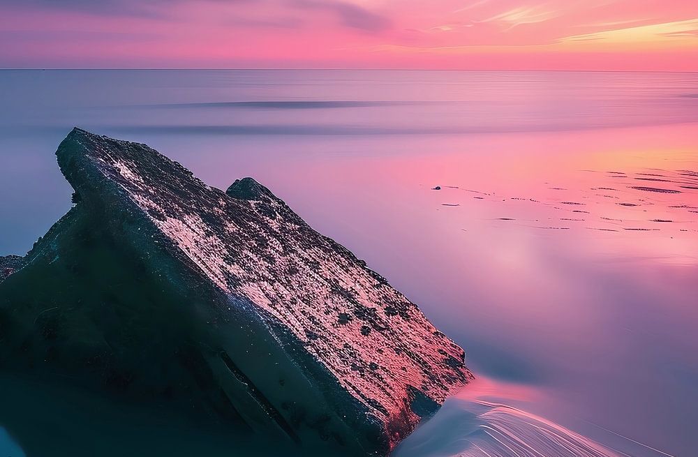 Ästhetischer Minimalismusfernlichtsicht Sonnenaufgang am Meerfernlichtsicht