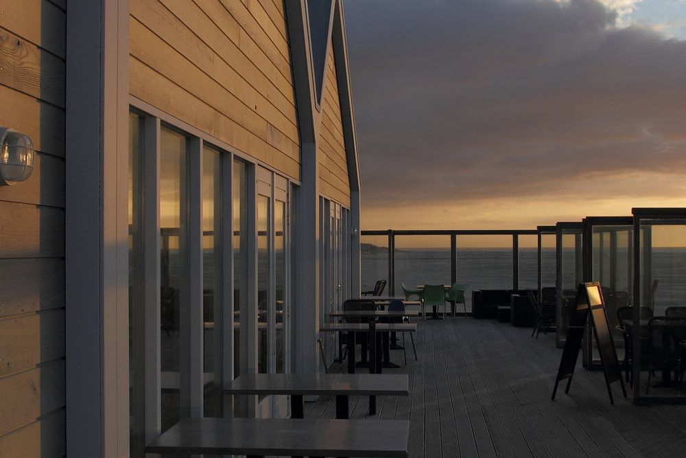 Uitzicht vanaf een strandtent aan de Noordzeekust op Texel