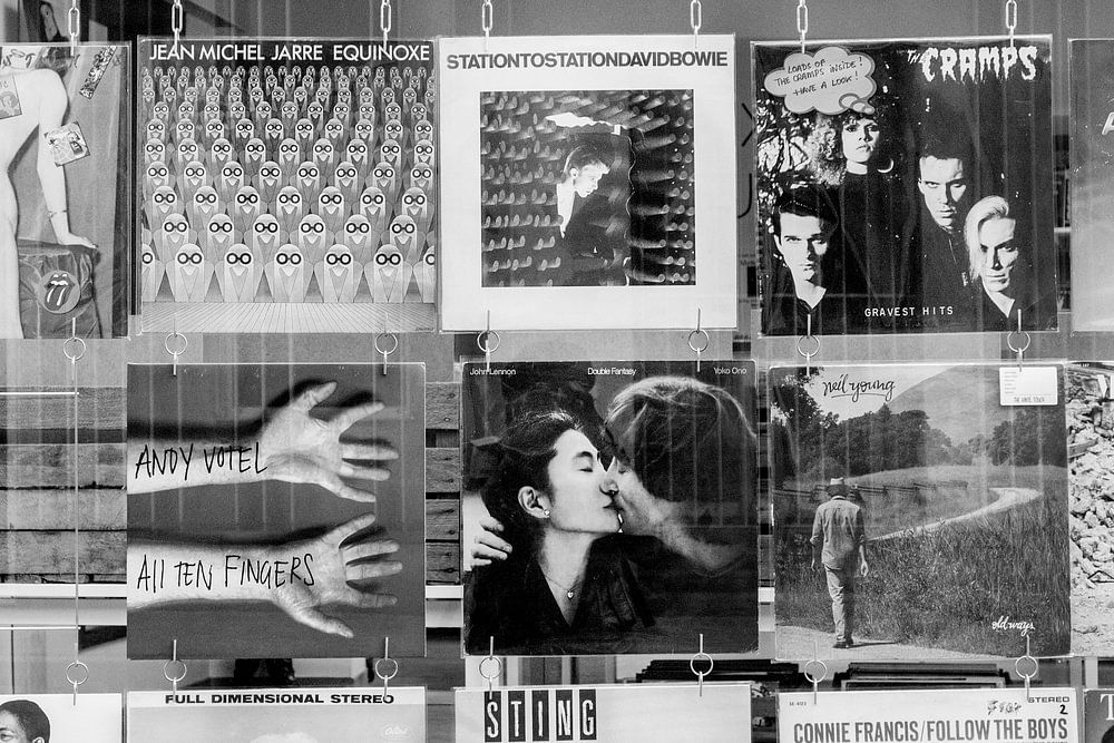 Straßenfotografie, Musikschaufenster in Antwerpen.