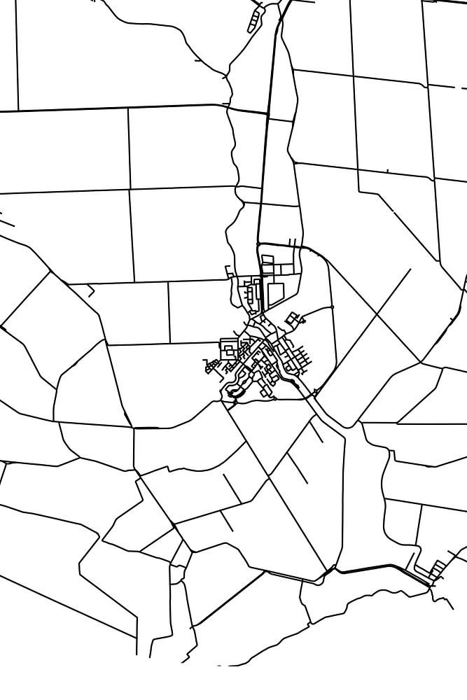 Schwarz-weiße Karte, Straßenkarte oder Straßenplan von Strijen. Strijen liegt in der Gemeinde Hoeksche Waard in der Provinz Südholland. Der Stadtplan enthält alle öffentlichen Straßen in Strijen. Darüber hinaus ist die Karte mit den Koordinaten des Zentrums von Strijen versehen.