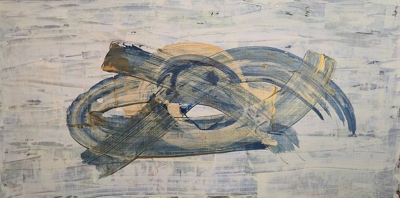 Dieses handgemalte Acrylbild auf Leinwand überzeugt durch seine moderne, abstrakte Formsprache und eine harmonische Farbkomposition aus sanften Grau-, Blau- und warmen Beigetönen. Dynamische, schwungvolle Pinselbewegungen treffen auf eine ruhige, strukturierte Hintergrundfläche und verleihen dem Werk eine besondere Tiefe, Leichtigkeit…
