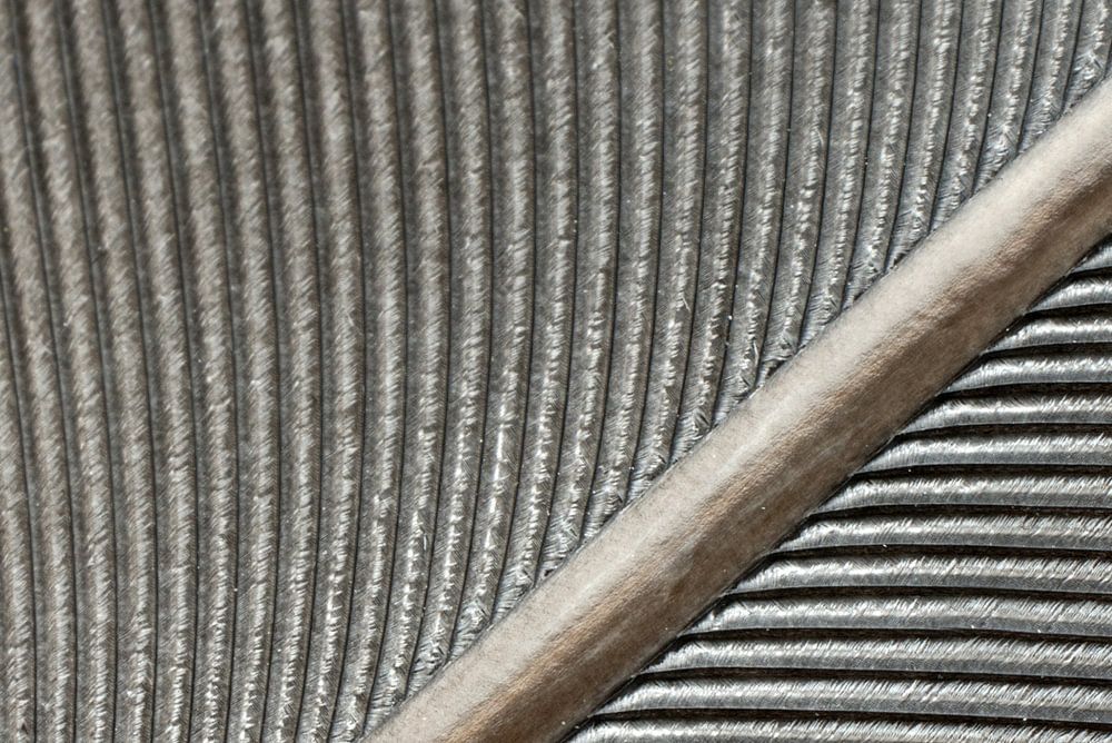 Makroaufnahme einer Vogelfeder. Die diagonalen Linien und die Textur machen dieses Bild zu einem interessanten Hintergrund für verschiedene Möglichkeiten.