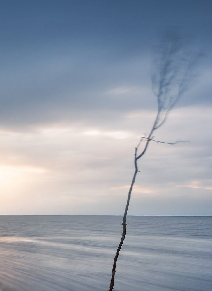 Dieses Bild ist an einem sehr stürmischen Abend an der dänischen Nordseeküste entstanden. Es zeigt einen Baum im Wattenmeer welcher vom Wind kräftig durchgeschüttelt wird.