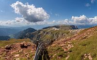 Blick vom Schlern auf die umliegende Berglandschaft in Südtirol, Italien, Europa