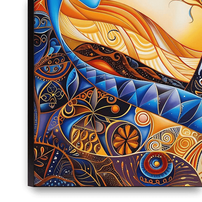 Ihre gewählte Kunst auf Leinwand, gespannt in einem Aluminiumrahmen. Schnell und einfach austauschbar für eine frische Ausstrahlung und ganz nach Ihren Wünschen.