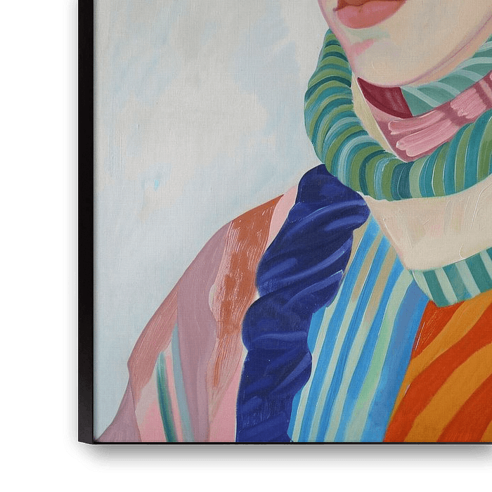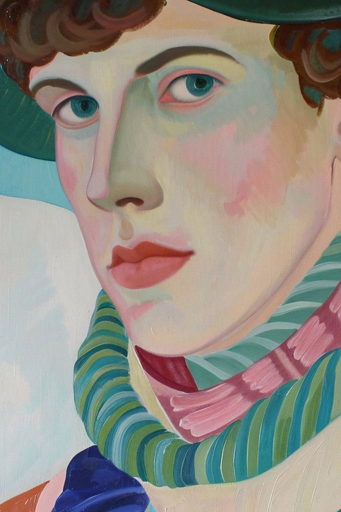 Dieses schöne surrealistische Gemälde zeigt einen Mann, der einen auffälligen Hut und einen bunten Schal trägt. Die leuchtenden Farben und fließenden Formen verleihen dem Kunstwerk einen einzigartigen und fesselnden Look. Das Porträt strahlt ein Gefühl von Geheimnis und Stil aus, perfekt für alle, die ein auffälliges Stück für ihr Zuhause oder Büro suchen. Die Verwendung verschiedener Grün-, Blau-, Rosa-, Orange- und Gelbtöne macht das Gemälde dynamisch und attraktiv. Dieses Kunstwerk wird mit Sicherheit für Gesprächsstoff sorgen und eine farbenfrohe Ergänzung für jeden Raum darstellen.