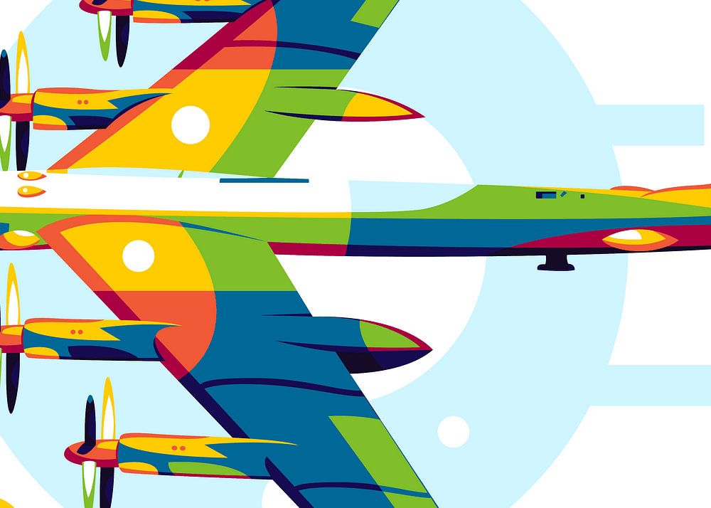 TU-95 Bär in Pop Art mit geschwungenen Formen und einer Kombination aus vielen Farben zu einem niedlichen, eleganten, coolen und natürlich bunten TU-95 Bär Objekt.