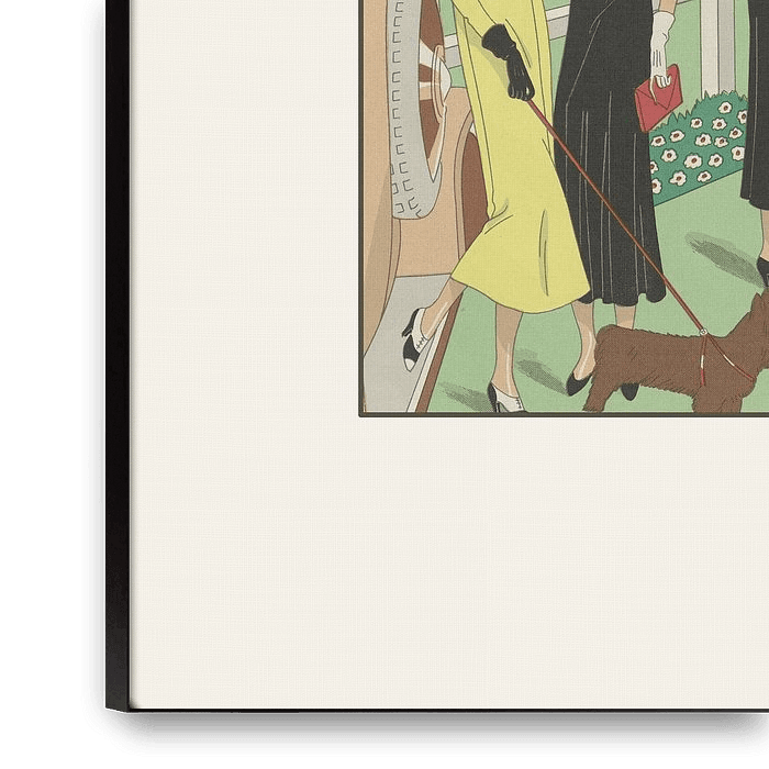 Ein historischer Modedruck mit einem modernen Twist. Inspiriert vom Art Deco, einer Stilrichtung, die in den 1920er Jahren entstand. New Businessmanship gemischt mit modernen klaren Linien und Farben.