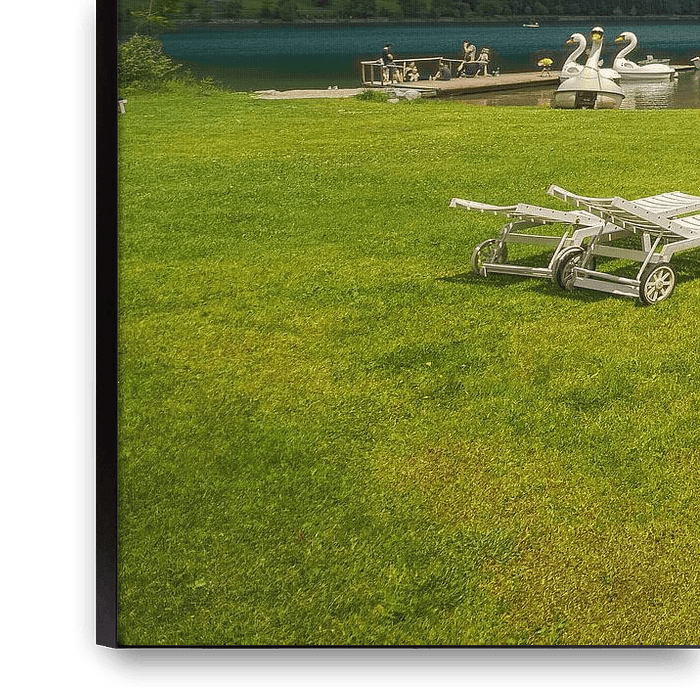 Ihre gewählte Kunst auf Leinwand, gespannt in einem Aluminiumrahmen. Schnell und einfach austauschbar für eine frische Ausstrahlung und ganz nach Ihren Wünschen.