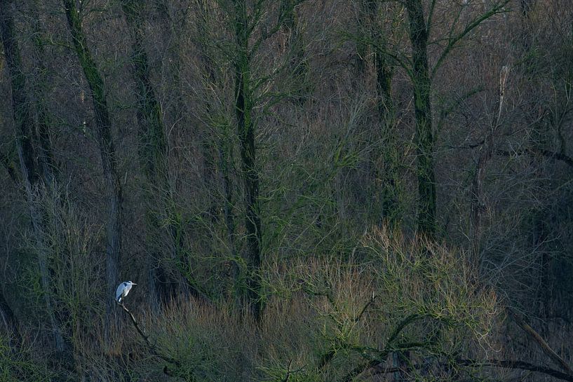 Der Farbunterschied und das Licht lassen den Reiher aus dem Rahmen springen.