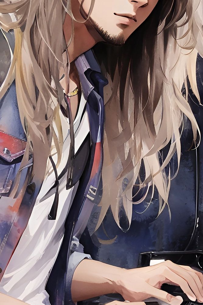 Digitale Zeichnung im Anime- und Aquarellstil des Keyboarders einer Rockband.