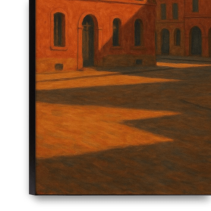 Toulouse Afternoon Glow strahlt die rustikale Wärme der "Ville Rose" aus, wo Terrakotta-Fassaden das tiefe Orange der untergehenden Sonne einfangen. Schatten formen geometrische Formen auf dem kopfsteingepflasterten Platz, während eine einzelne Holzbank in der Stille wartet. Dahinter erhebt sich der Kirchturm von Saint-Sernin, der sich…