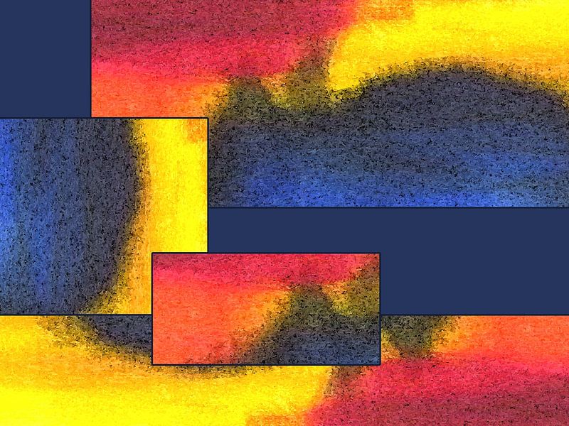 Digitale Bildbearbeitung - Mixed Media, zum Teil Details aus Original Kunstwerken, zum Teil aber auch am PC erstellte Strukturen und Farbflächen. Die daraus entstehenden Kompositionen werden weiter digital verändert, gepixelt und mit verschiedenen Filtern überarbeitet. Dadurch entstehen viele kleine Farbfelder, was für mich die Energien…