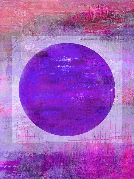 Zentrierter Kreis im Quadrat mit groben Pinselstrichen im Vordergrund und Hintergrund.
