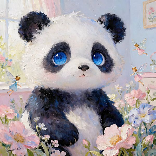 Bestelle das digitale Kunst Bild Traumwiese – Pandabär von Johannas Art Creations als Reproduktion auf Leinwand, Alu-Dibond, als Poster, Fototapete oder Acrylglasbild.