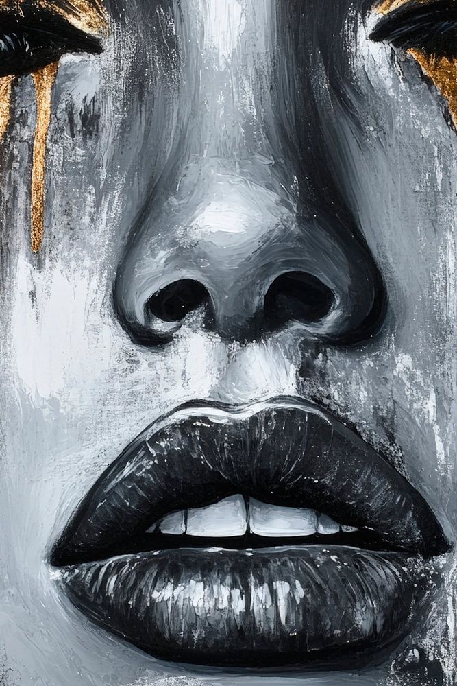 Eine fesselnde Darbietung von Gefühlen: Die traurigen goldenen Tränen, die über das Gesicht fließen, verleihen dieser melancholischen Figur eine überwältigende Eleganz. Die monochrome Farbpalette wird durch die strahlenden goldenen Akzente lebendig. Ideal für das Wohnzimmer, schafft es einen nachdenklichen Mittelpunkt und regt tiefgründige Gespräche an.