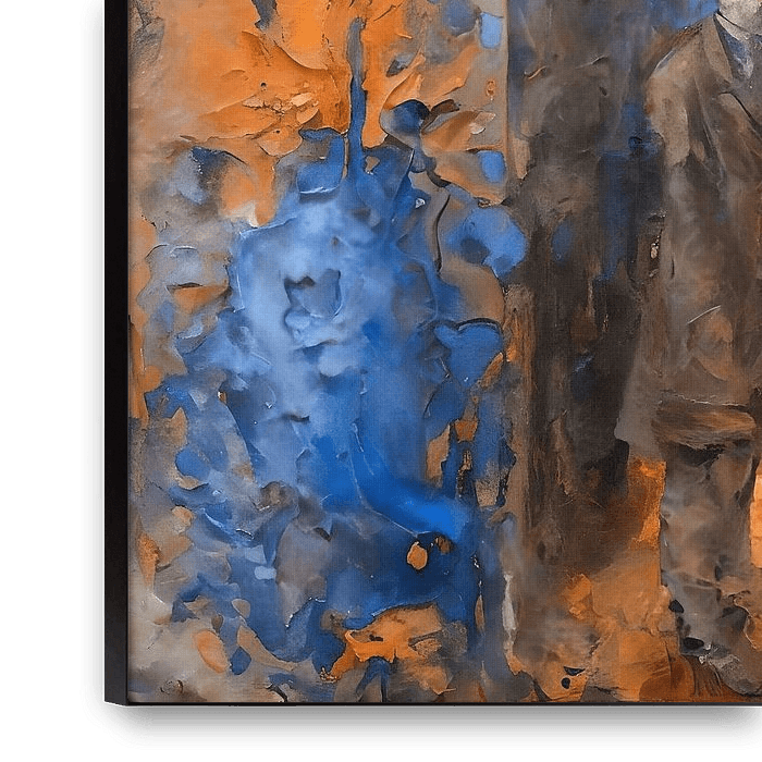 Bestelle diese Malerei Treffen der Seelen: Konversation in Blau und Orange von Retrotimes als Reproduktion auf Leinwand, Alu-Dibond, als Poster, Fototapete oder Acrylglasbild.