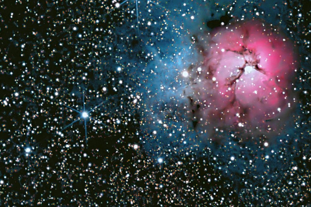 Astronomie: Trifid Nebel - Messier 20 und offener Sternhaufen Messier 21 in der Sommer - Milchstraße