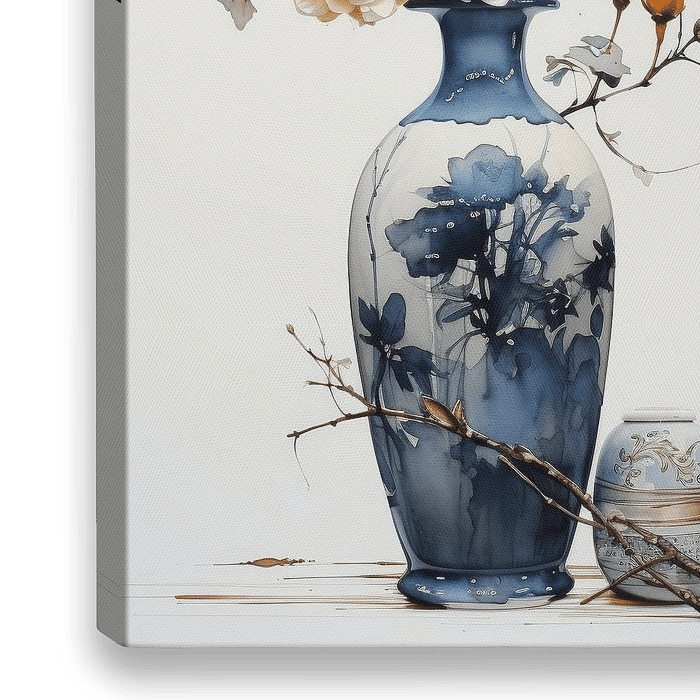 Bestelle dieses Blumen-Wandbild Trockenblumen in einer Kintsugi-Vase von Gelissen Artworks als Reproduktion auf Leinwand, Alu-Dibond, als Poster, Fototapete oder Acrylglasbild.