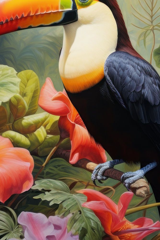 Der Tukan ist kein gewöhnlicher Vogel; er ist ein wandelndes Kunstwerk der Natur. Mit seinem farbenprächtigen Gefieder und einem Farbspektrum, das den Paletten der talentiertesten Künstler entnommen zu sein scheint, ist der Tukan ein Meisterwerk der Farbenpracht.