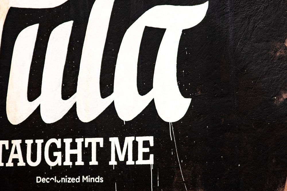 Ein wichtiges Wandbild und ein Slogan in Punda, Curaçao.