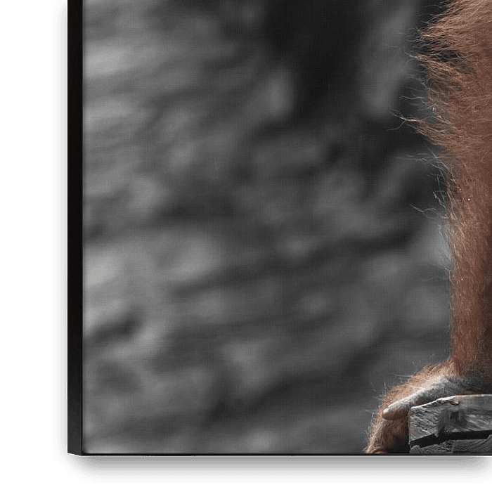 Bestelle das Foto Überraschender junger Orang-Utan mit üppigem roten Haar auf vier Beinen Foto von Michael Semenov als Reproduktion auf Leinwand, Alu-Dibond, als Poster, Fototapete oder Acrylglasbild.