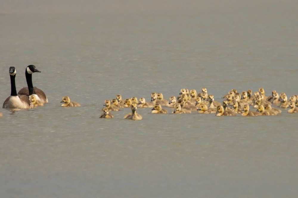 Im Naturschutzgebiet Hemelrijk Waard habe ich 2 erwachsene Kanadagänse mit bis zu 75 Nestlingen gesehen. Das kann niemals von einem Gänsepaar stammen.