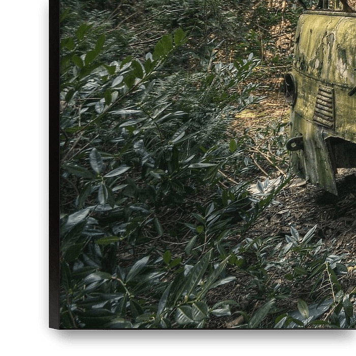 Bestelle das Foto Urbex - Jungle bus von Angelique Brunas als Reproduktion auf Leinwand, Alu-Dibond, als Poster, Fototapete oder Acrylglasbild.