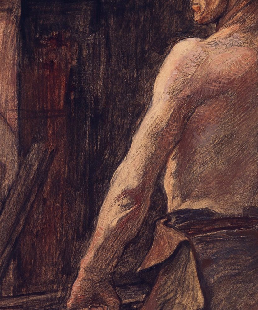 Constantin Émile Meunier (Etterbeek, 12. April 1831 - Ixelles, 4. April 1905) war ein belgischer Bildhauer, Maler und Grafiker, der im Auftrag von Camille Lemonnier eine Reihe von Illustrationen für dessen Buch La Belgique über die belgischen Bergbauregionen zeichnete. Diese industrielle Welt und die "harte Arbeit" der Kohlearbeiter haben ihn tief beeindruckt, ganz im Einklang mit dem Aufkommen der sozialen Bewegung in dieser Zeit. Er würde sich von nun an der Darstellung des Arbeiters widmen.