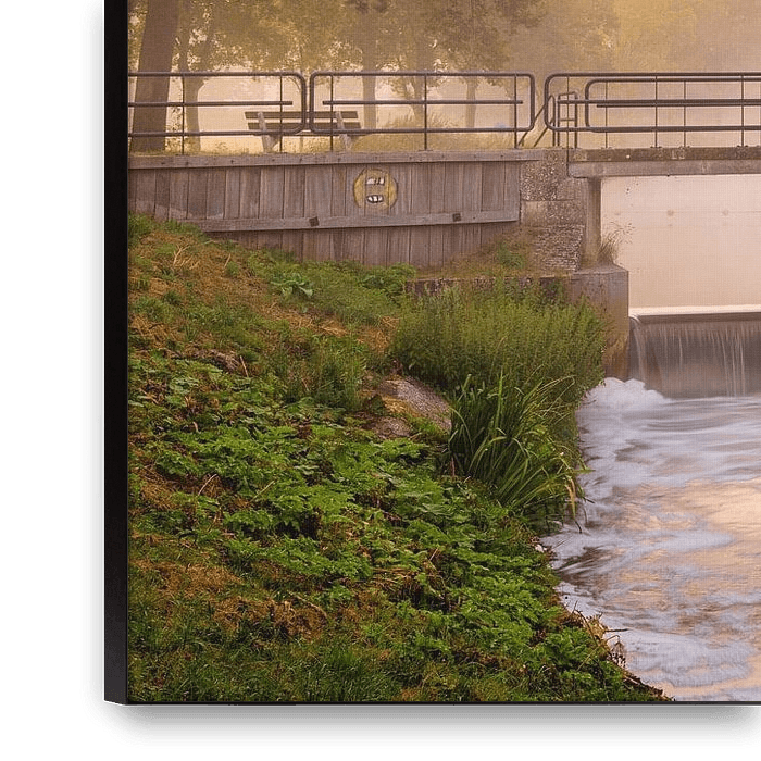 Der Valley Canal an einem schönen Frühlingsmorgen bei Sonnenaufgang. Es war herrlich ruhig. Nur der Gesang einiger Vögel war zu hören und natürlich das Wasser im Roffelaarskade-Wehr.
