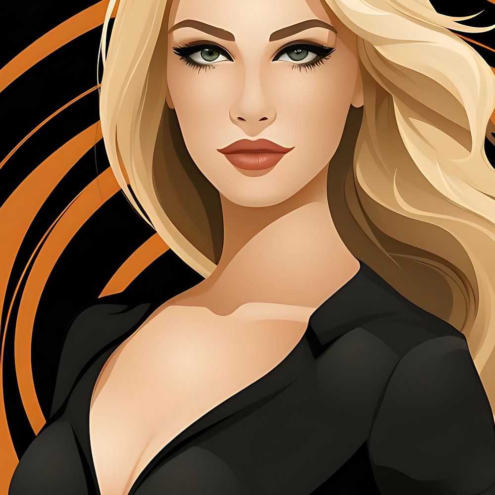 In einer von Rob Janoff inspirierten Vektorzeichnung einer jungen blonden Frau strahlt ihre jugendliche Schönheit und ihr Selbstvertrauen. Mit eleganten Linien und subtilen Details wird ihre Ausstrahlung lebendig, während ihr Blick den Betrachter fesselt. Ein zeitgenössisches Kunstwerk, das die Kraft der Weiblichkeit und stilvolle Finesse feiert.