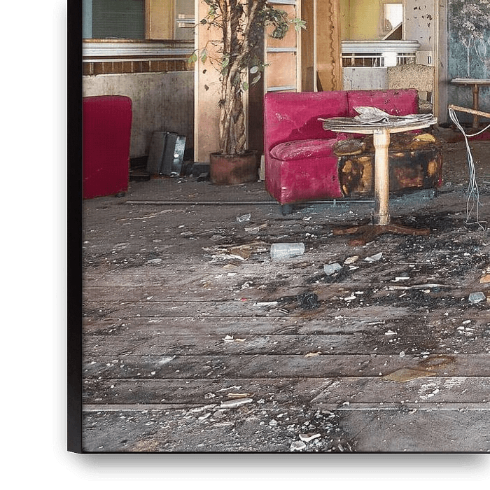 Dieses Foto ist in einem riesigen verlassenen Gebäude mit einem schönen Garten. Es war früher eine Diskothek / Tanzkomplex und wurde seit einigen Jahren aufgegeben. Dies war Teil einer der Tanzhallen, die einst die einzigen interessanten Räume waren, um nach links zu fotografieren.