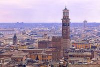 Blick über die Dächer der Altstadt von Verona, Italien, mit dem markanten Torre dei Lamberti als zentralem Motiv.