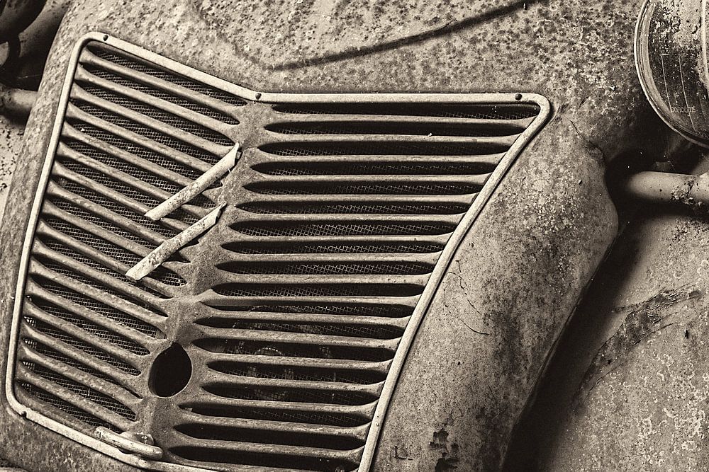 Ein alter rostiger 2CV, der schon bessere Tage gesehen hat, aber seinen Charakter bewahrt hat.