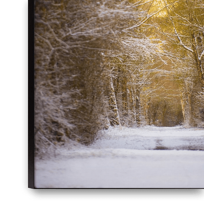 Bestelle dieses Landschafts-Wandbild Verschneite Allee im Wintermorgenlicht von Robert Ruidl als Reproduktion auf Leinwand, Alu-Dibond, als Poster, Fototapete oder Acrylglasbild.