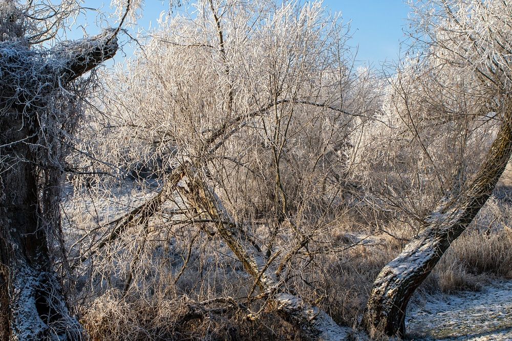 Verschneite Landschaft hinter dem Deich