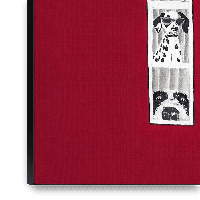 Bestelle dieses Popart-Wandbild Verspielte Hundegesichter von Idah Christina als Reproduktion auf Leinwand, Alu-Dibond, als Poster, Fototapete oder Acrylglasbild.
