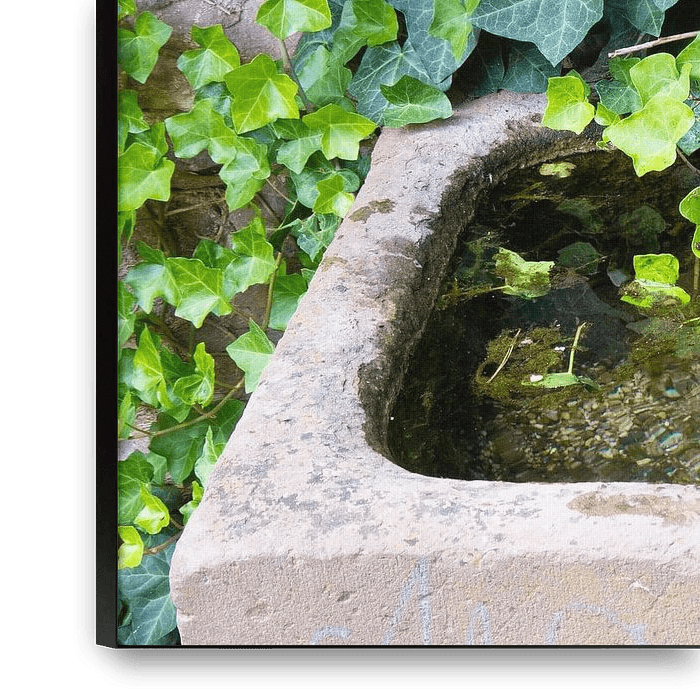 Bestelle das Foto Versteckter Springbrunnen - Efeu und Wasser in Karlsruhe-Durlach von Matthias Hauser als Reproduktion auf Leinwand, Alu-Dibond, als Poster, Fototapete oder Acrylglasbild.