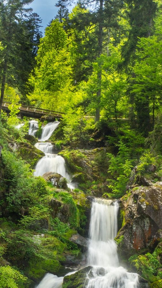 Viele Wasserfälle im grünen Wald Dschungel wie Natur Landschaft mit Sonne
