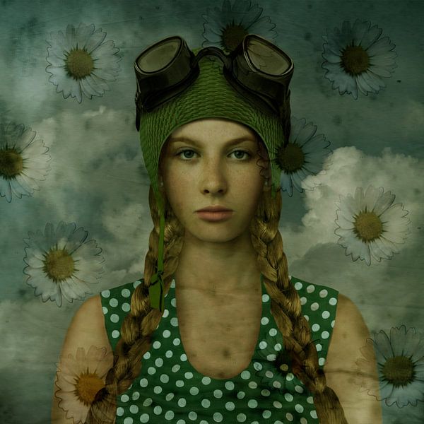Bestelle dieses Porträt Vintage Beauty Badekappe von Yvonne Zeldenthuis als Reproduktion auf Leinwand, Alu-Dibond, als Poster, Fototapete oder Acrylglasbild.