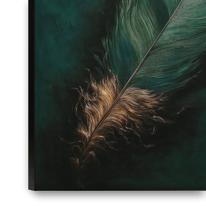 Eine faszinierende Fusion von Kunst und Natur - Dieses Gemälde zeigt kunstvoll gestaltete Federn, die in lebendigen Farben und feinen Details auf die Leinwand gezaubert wurden.