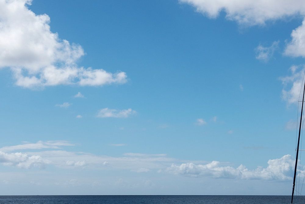 Segeln in der Karibik ist ein besonderes Erlebnis. Viel Meer, viel Luft und oft große Entfernungen zwischen den Inseln. Die Weite und das Gefühl der Freiheit sind unendlich. Auf dem karibischen Meer spürt man oft die Wellen des Atlantiks. Eine Welle, die vom Ozean kommt und auch wieder zum Ozean zurückrollt. Nur wenn man sich hinter einer Insel befindet, ist das Wasser ruhig und man bemerkt diese rollenden Wellen nicht. Dieses Segelboot liegt nach einem Segeltag ruhig am Salt Plage vor Anker. Ein Café direkt am Strand in einer kleinen Bucht auf Saint Kitts, der großen Insel des Archipels von Saint Kitts und Nevis. Mit einem Liegeplatz so nah am Ufer ist es nach einem vollen Segeltag nur ein kurzer Weg zu einem angenehmen Abend mit gutem Essen und guter Gesellschaft an einem entspannten, sommerlichen Ort. Barefoot Sophistication, wie sie selbst sagen.