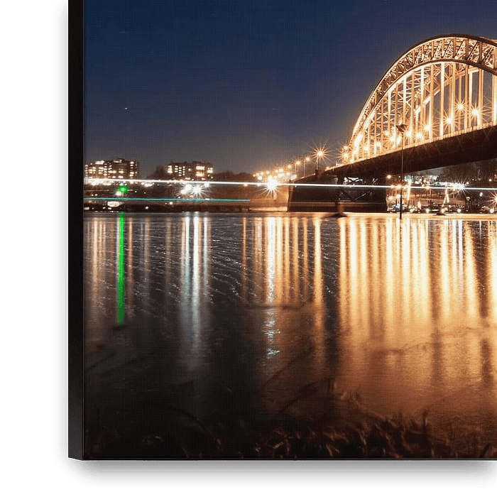 Bestelle das Foto Waalbrücke Nijmegen bei Nacht von Nicky Kapel als Reproduktion auf Leinwand, Alu-Dibond, als Poster, Fototapete oder Acrylglasbild.