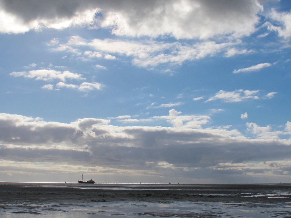 Waddenzee vanaf Terschelling met een mooi zonnetje door de wolken