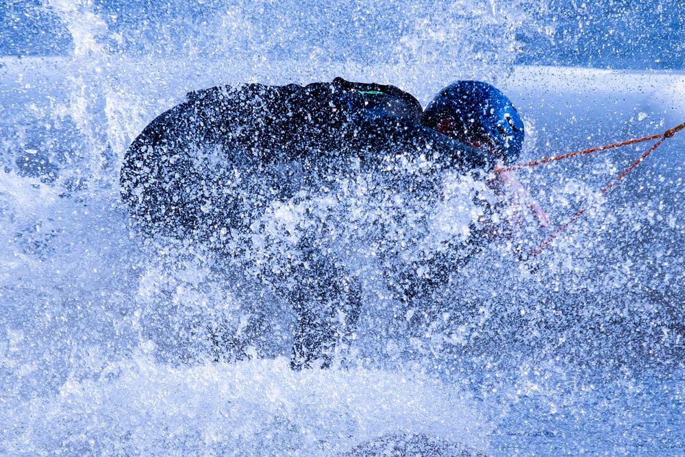 Ein Wakeboarder, bearbeitet, die blauen Farben betont