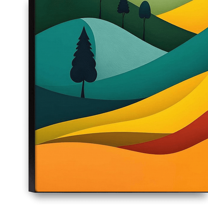 Ihre gewählte Kunst auf Leinwand, gespannt in einem Aluminiumrahmen. Schnell und einfach austauschbar für eine frische Ausstrahlung und ganz nach Ihren Wünschen.
