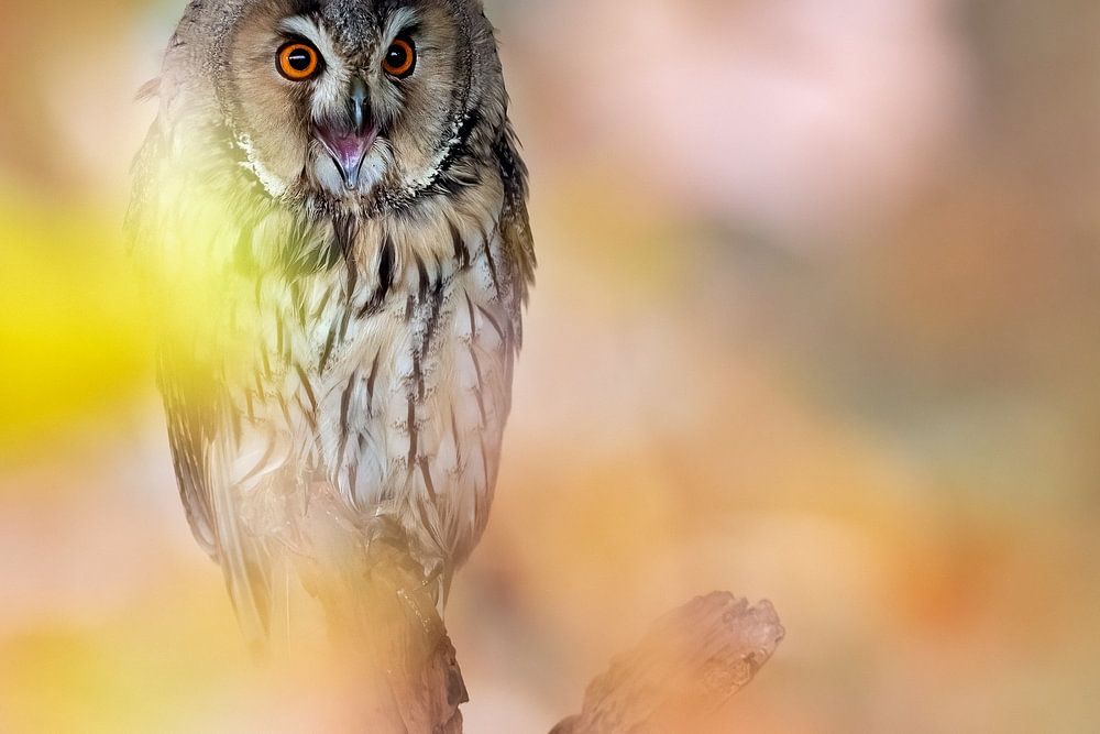 Waldohreule in schöner Herbstlandschaft. Diese Eule kommt auch in den Niederlanden vor.