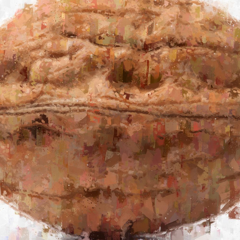 Gemälde von großen Früchten und Gemüsen.