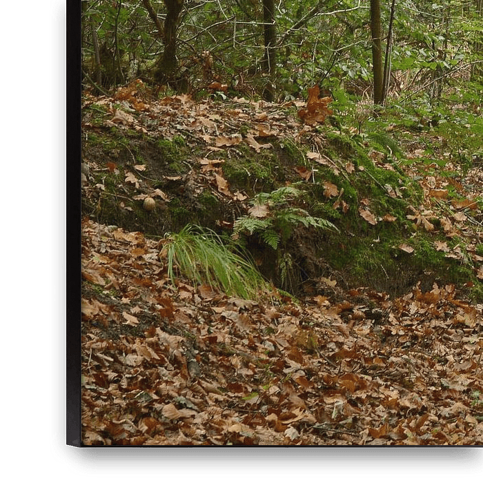 Bestelle dieses Landschafts-Wandbild Wanderweg im Wald mit Perspektive auf die Herbstbaumreihe von Trinet Uzun als Reproduktion auf Leinwand, Alu-Dibond, als Poster, Fototapete oder Acrylglasbild.
