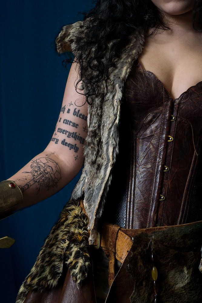 Für Gerritsen Theatre Costumes habe ich dieses Porträt des Models Sukie angefertigt, das im völlig abgedunkelten Studio als Warrior auftrat.